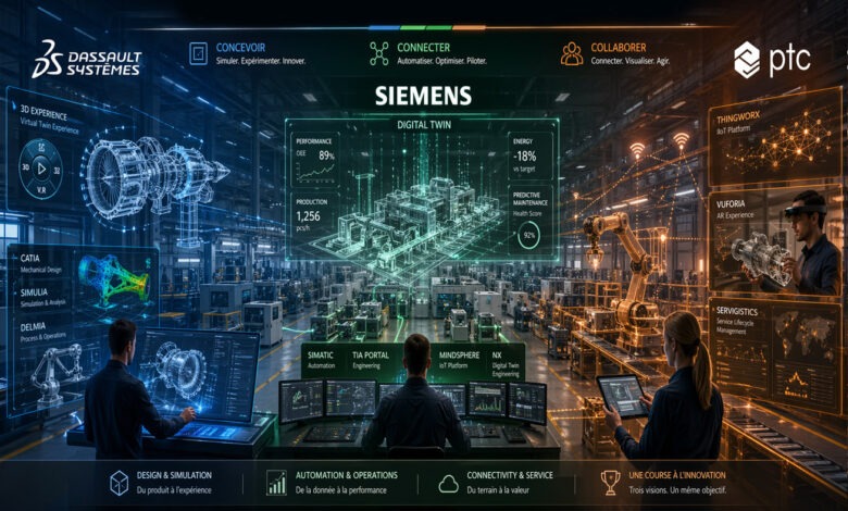 Dassault Systèmes se concentre sur la simulation avancée et la modélisation, Siemens sur l’intégration industrielle de bout en bout, et PTC sur l’exploitation des données en temps réel et l’optimisation opérationnelle.